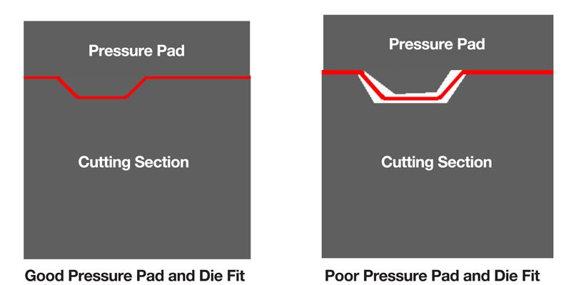 Các miếng đệm hoặc dải đệm không phù hợp, bị cong hoặc méo mó thường không giữ chặt các bộ phận một cách thích hợp, do đó các bộ phận sẽ di chuyển khi được tạo hình hoặc cắt (xem Hình 1 ).