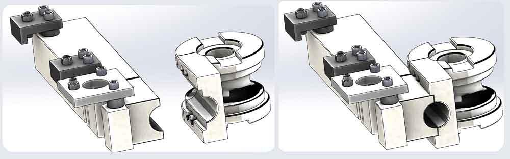 Một giải pháp là sử dụng công cụ khóa liên động (xem Hình 1 ). Như tên của nó, dụng cụ khóa liên động tích hợp khuôn gạt nước, khuôn kẹp và khuôn áp lực, lắp chúng bên trong lỗ khóa liên động của khuôn uốn cong. Từng được sử dụng chủ yếu trong các ứng dụng hàng không vũ trụ, mỹ phẩm và khối lượng lớn, dụng cụ khóa liên động đã trở thành một thiết kế dụng cụ được ưa chuộng cho hầu hết mọi ứng dụng uốn ống vì nó cung cấp độ uốn cong chất lượng cao và tạo điều kiện cho việc thiết lập dễ dàng hơn.