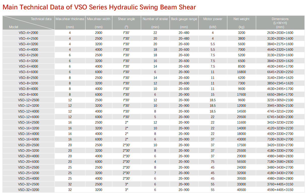 Máy cắt tôn thủy lực dạng dao quay VSO series (VSO Series Hydraulic Swing Beam Shearing machine)